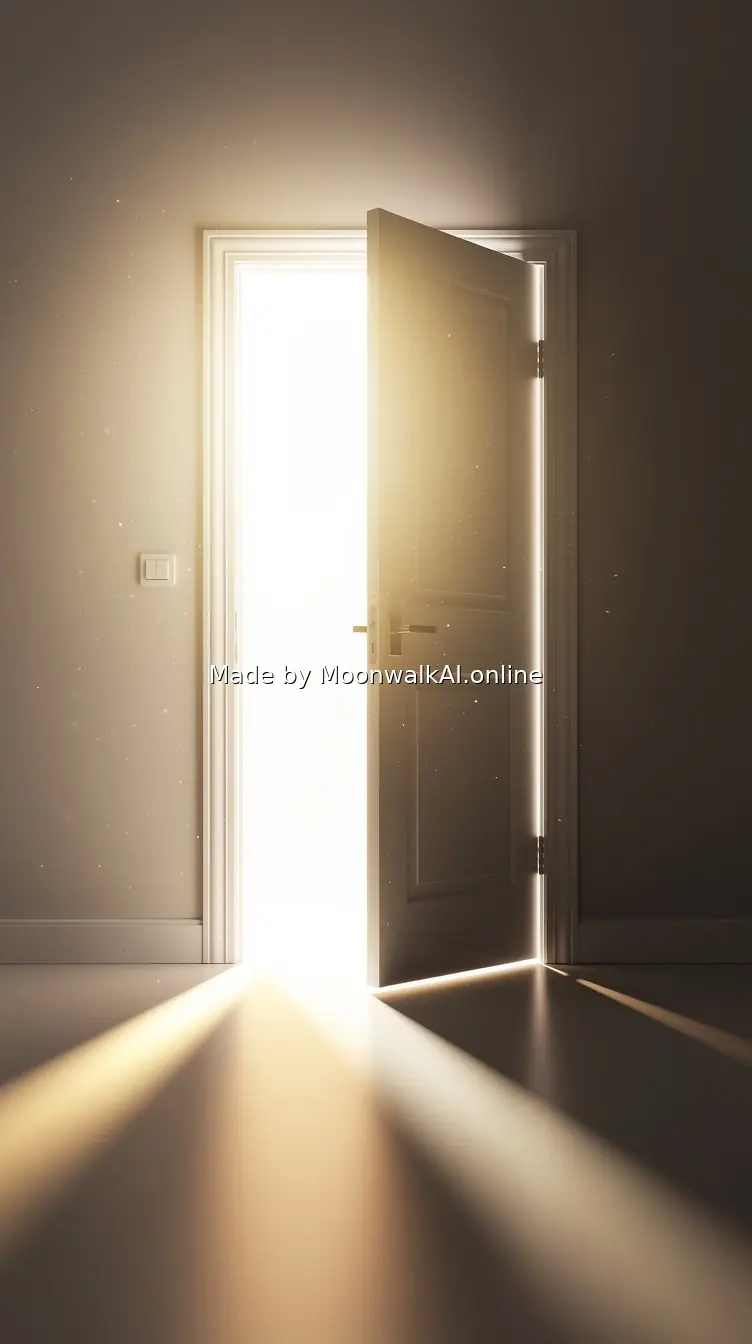 Uplifting image of an open door with bright light streaming through, symbolizing empowerment, choices, and positive possibilities ahead